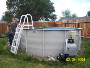 The pool was an older oversized Dough-boy. It ran 24 feet long by 12 wide. I enjoyed swimming laps and lounging on a float. But as the years went by I used it less and less. When I went back to work full time I used it on the weekends only, as by the time I got home the wind had picked up and it was too cold to swim. This last summer I was toying with the idea of taking the pool down, but was not quite ready to give up on my weekend swims. Well the pool gave up on me! The liner and skimmer cracked, the sides started to sag and the ladder was starting to show signs of wear and tear. Turns out the pool is over 15 years old and needed an overhaul or taken down. I priced everything out and after adding up the cost I decided it was time to take the pool down.